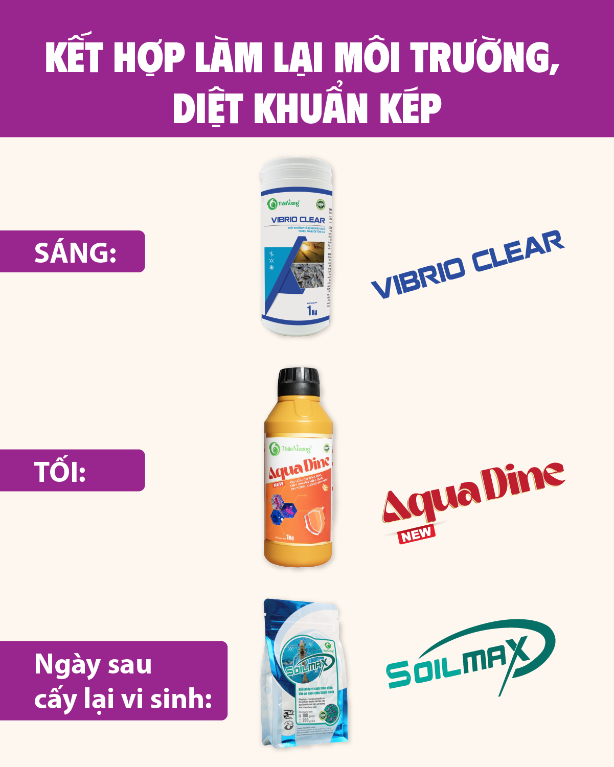 Bên cạnh việc xử lý đường ruột, việc làm lại môi trường ao nuôi và kiểm soát mầm bệnh trong nước cũng vô cùng quan trọng. Giải pháp kết hợp được khuyến nghị: